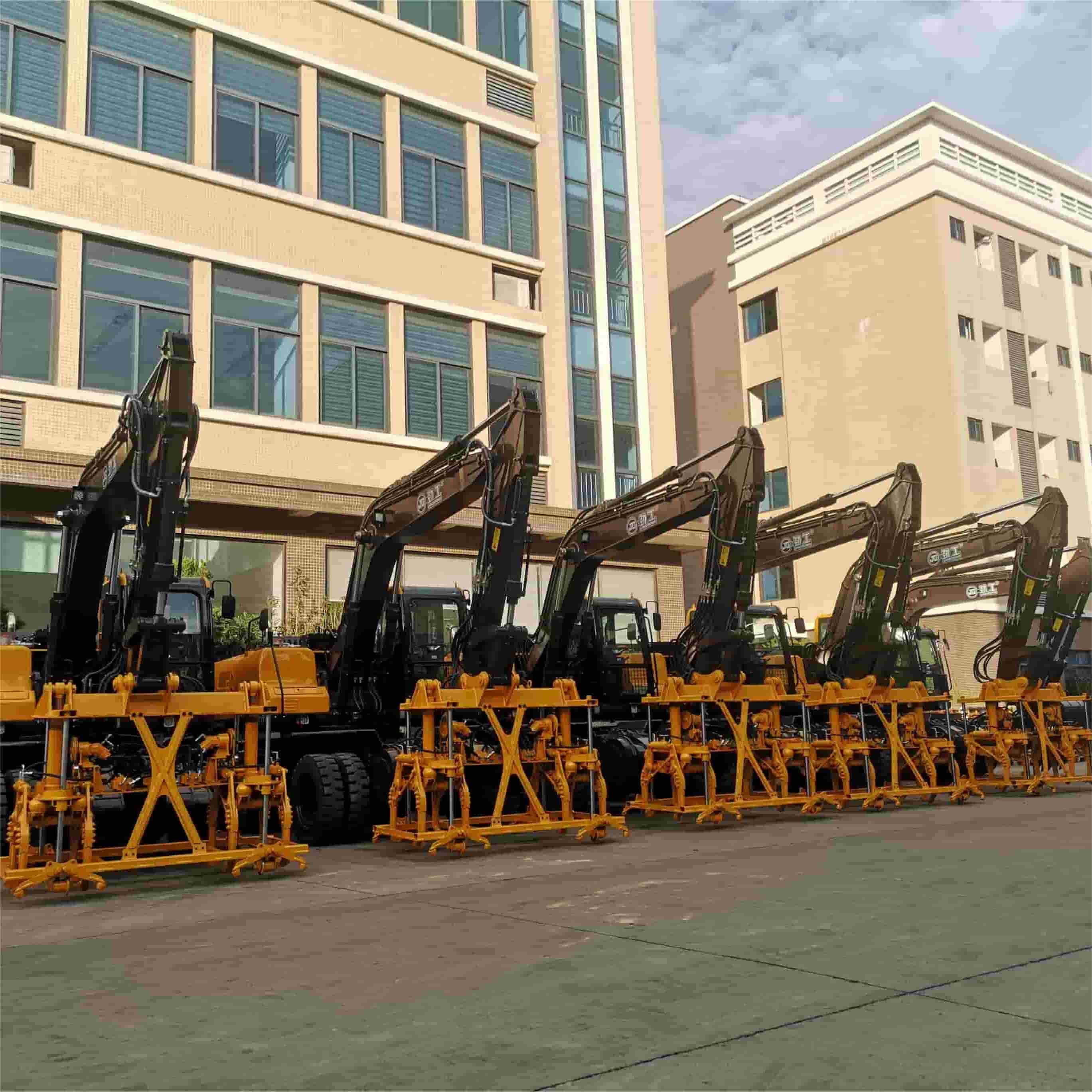 Mesin Pemadatan Rel Kereta Api Kepala Ganda 15 ton, Ekskavator Beroda untuk Rel Kereta Api